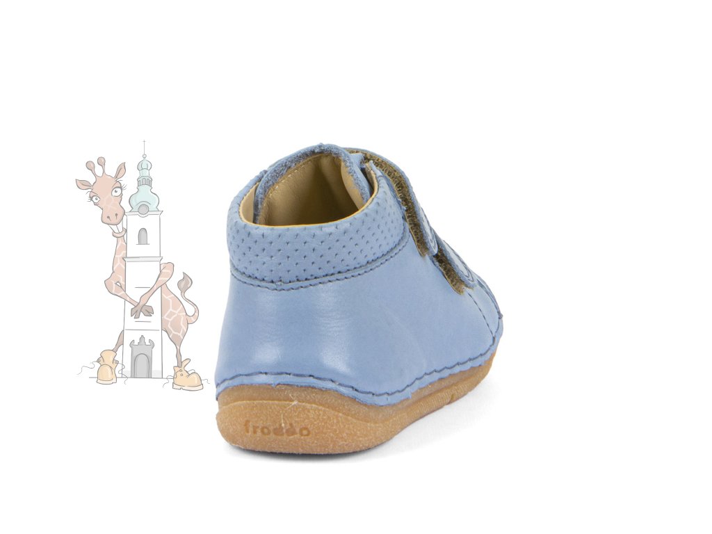 Obuv Froddo je vyrobena z vysoce kvalitní přírodní kůže, která je evropského původu. Poskytuje komfort, vzdušnost a napomáhá dětským nohám zdravému a přirozenému vývoji.Stálý vzhled přírodní kůže získáte ošetřením vlhkým hadříkem a prostředky k ošetření obuvi. Obuv nejdříve očistěte suchou houbou nebo hadříkem od prachu a nečistot. Po té aplikujte tenkou vrstvu krému na boty a lehce rozetřete. Do deštivého a vlhkého počasí používejte impregnaci. Její pravidelné používání zajišťuje trvalý vzhled přírodní kůže a brání vlhkosti dostat se dovnitř.
