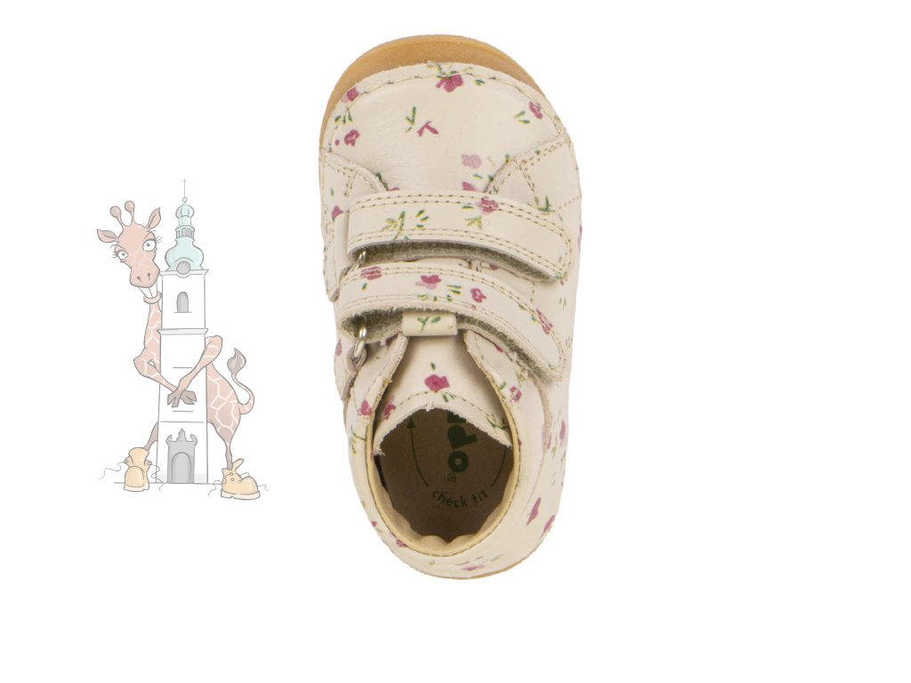 Obuv Froddo je vyrobena z vysoce kvalitní přírodní kůže, která je evropského původu. Poskytuje komfort, vzdušnost a napomáhá dětským nohám zdravému a přirozenému vývoji.Stálý vzhled přírodní kůže získáte ošetřením vlhkým hadříkem a prostředky k ošetření obuvi. Obuv nejdříve očistěte suchou houbou nebo hadříkem od prachu a nečistot. Po té aplikujte tenkou vrstvu krému na boty a lehce rozetřete. Do deštivého a vlhkého počasí používejte impregnaci. Její pravidelné používání zajišťuje trvalý vzhled přírodní kůže a brání vlhkosti dostat se dovnitř.