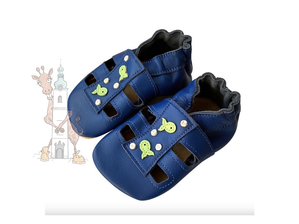 Kožené capáčky Hopi Hop barefoot sandálky rybičky modrá