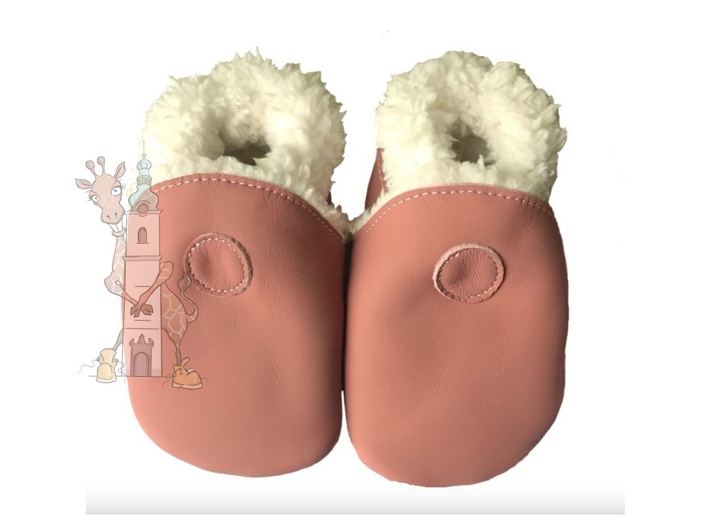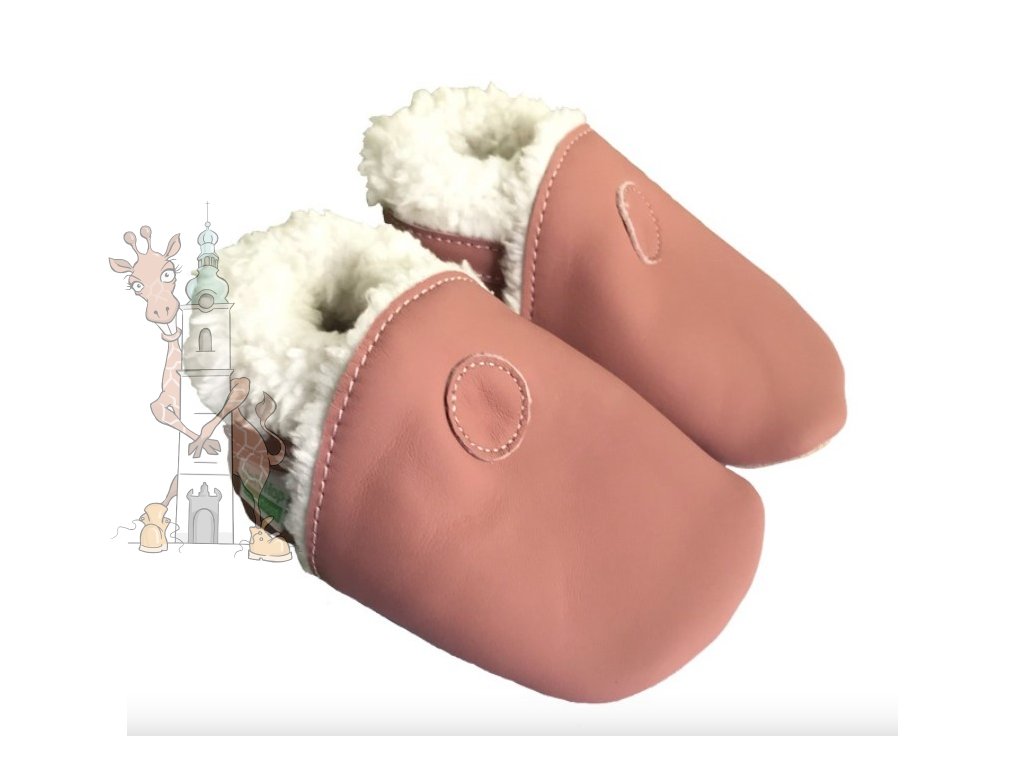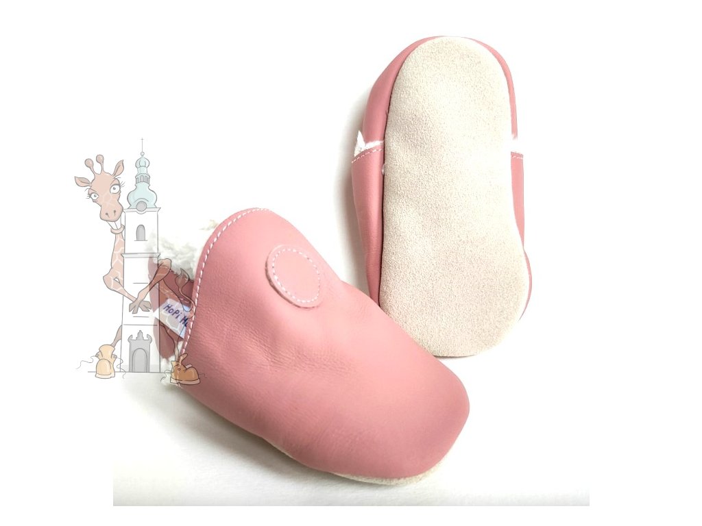 Kožené capáčky Hopi Hop barefoot zimní růžové